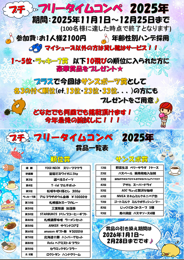 - 11/1~12/25フリータイムコンペを開催いたします。!