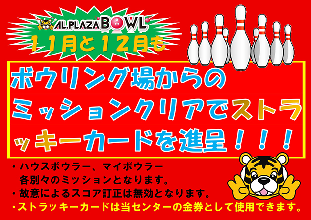 - 11・12月限定、ボウリング場からのミッションクリアで景品プレゼント!